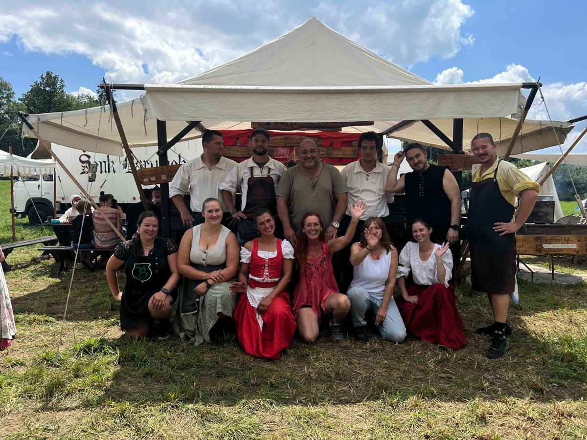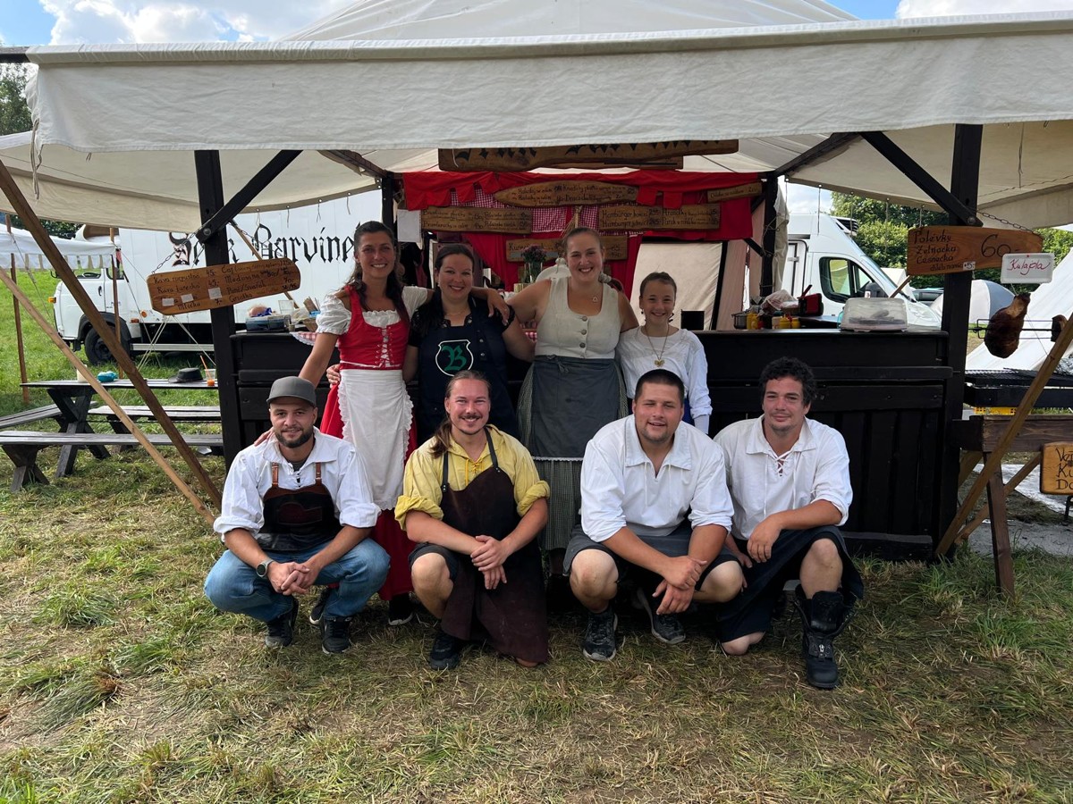 V průběhu sezóny se účastníme rekonstrukcí bitev, zámeckých a hradních slavností, městských i obecních akcí, kde se postaráme o váš plný břich, uhasíme žízeň i dodáme sladkou tečku ke kávě. Mezi naše speciality patří domácí halušky, koláčky, buchty s láskou pečené a samozřejmě i gril plný masa, šunky od kosti, jehněčích klobásek, vepřové koleno a jiné.